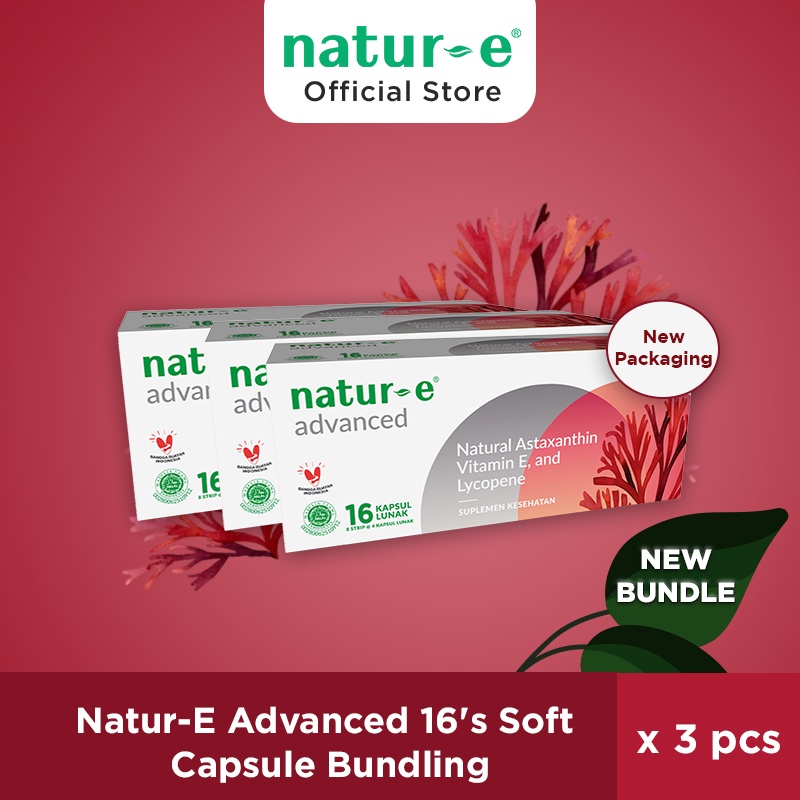 Agar kulit terlihat sehat harus dilakukan perawatan dari luar dan dalam. Kulit harus tetap dijaga kesehatannya walaupun sudah di usia dewasa. Natur-E Advanced Soft Capsule merupakan kombinasi yang berasal dari bahan alam untuk membantu memelihara kesehatan kulit. Natur-E Advanced Soft Capsule mengandung kandungan alami dari: - Astaxanthin dari ganggang merah sebagai antioksidan dalam membantu memelihara kesehatan kulit - Vitamin E sebagai antioksidan yang membantu memelihara kesehatan kulit dengan meredam efek radikal bebas - Lycopene sebagai antioksidan untuk memelihara kesehatan kulit