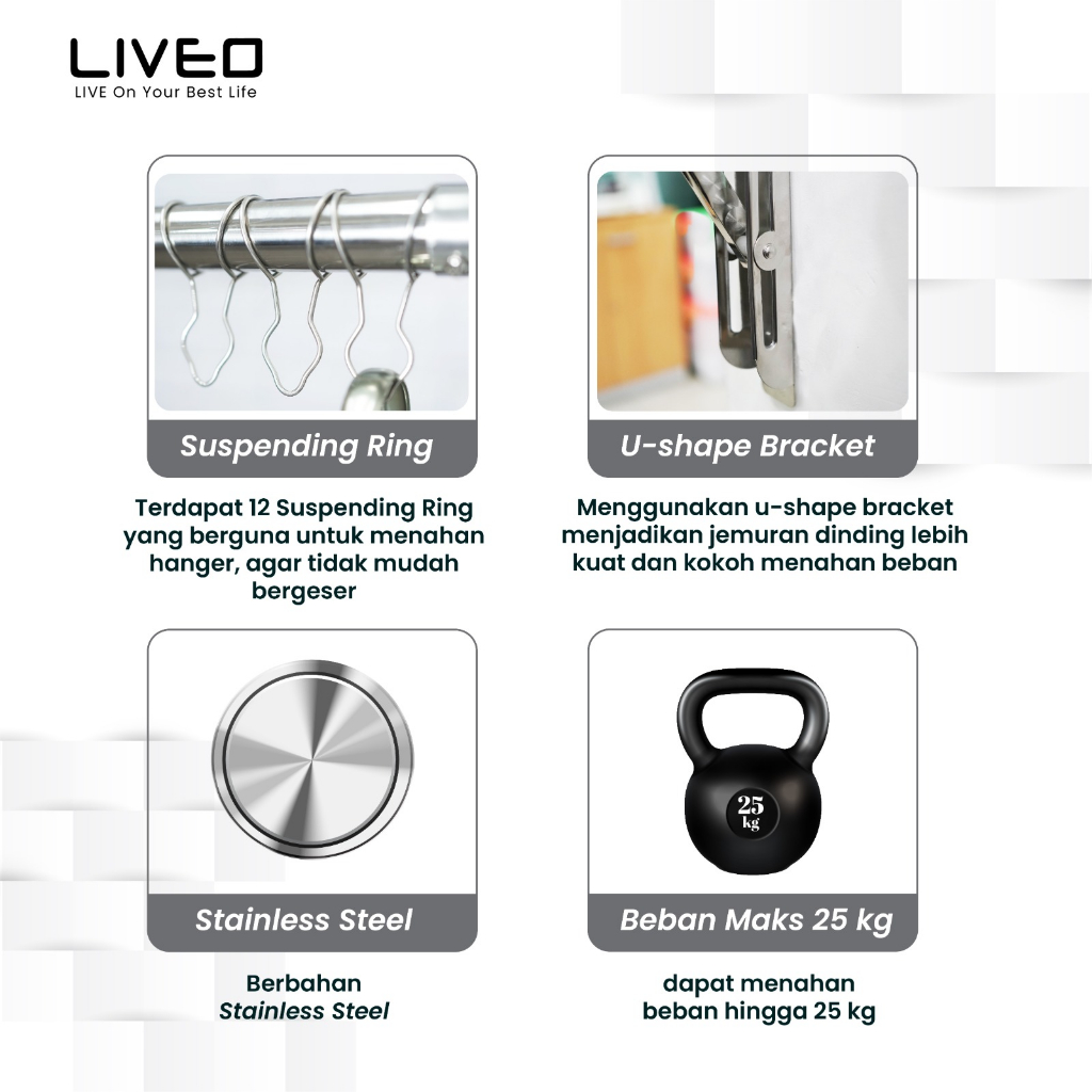 *Jemuran model dinding ini memiliki 4 batang pipa berukuran 200cm, dapat menahan beban hingga 30kg, dapat menjemur bedcover, ANTI KARAT, cocok untuk apartemen atau rumah minimalis. - Garansi 1 tahun (Service) - 100% Anti Karat - Support double bracket (lebih kuat tahan beban) - Panjang 200cm x 4 batang pipa - Dapat di lipat dan irit tempat - Muat banyak pakaian - Bisa untuk menjemur sprei & bedcover - Tahan beban sampai 30kg - Free 18 suspending rings - Cocok untuk penghuni apartemen/yg tdk mempunyai ruangan yg luas untuk menjemur