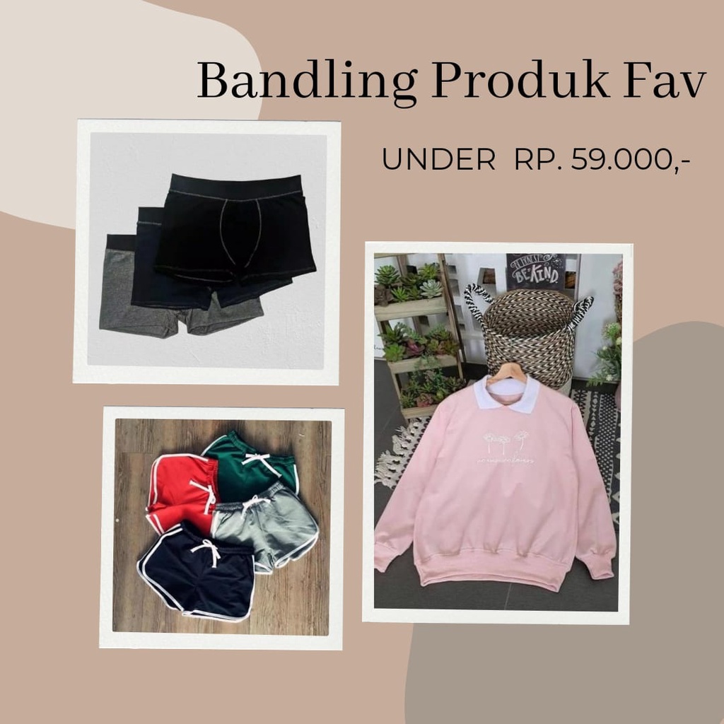 1. FAVORIT PAKET 1 YANG BERISI PRODUK CREWNACK + KAOS 2. FAVORIT PAKET 2 YANG BERISI PRODUK CREWNACK + BABY TERRY 3. FAVORIT PAKET 3 YANG BERISI PRODUK CREWNECK + HOTPANS + KOLOR