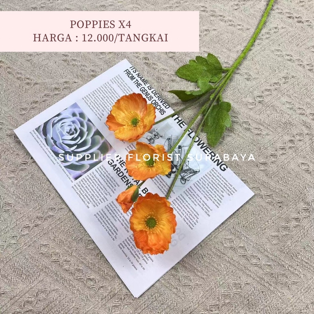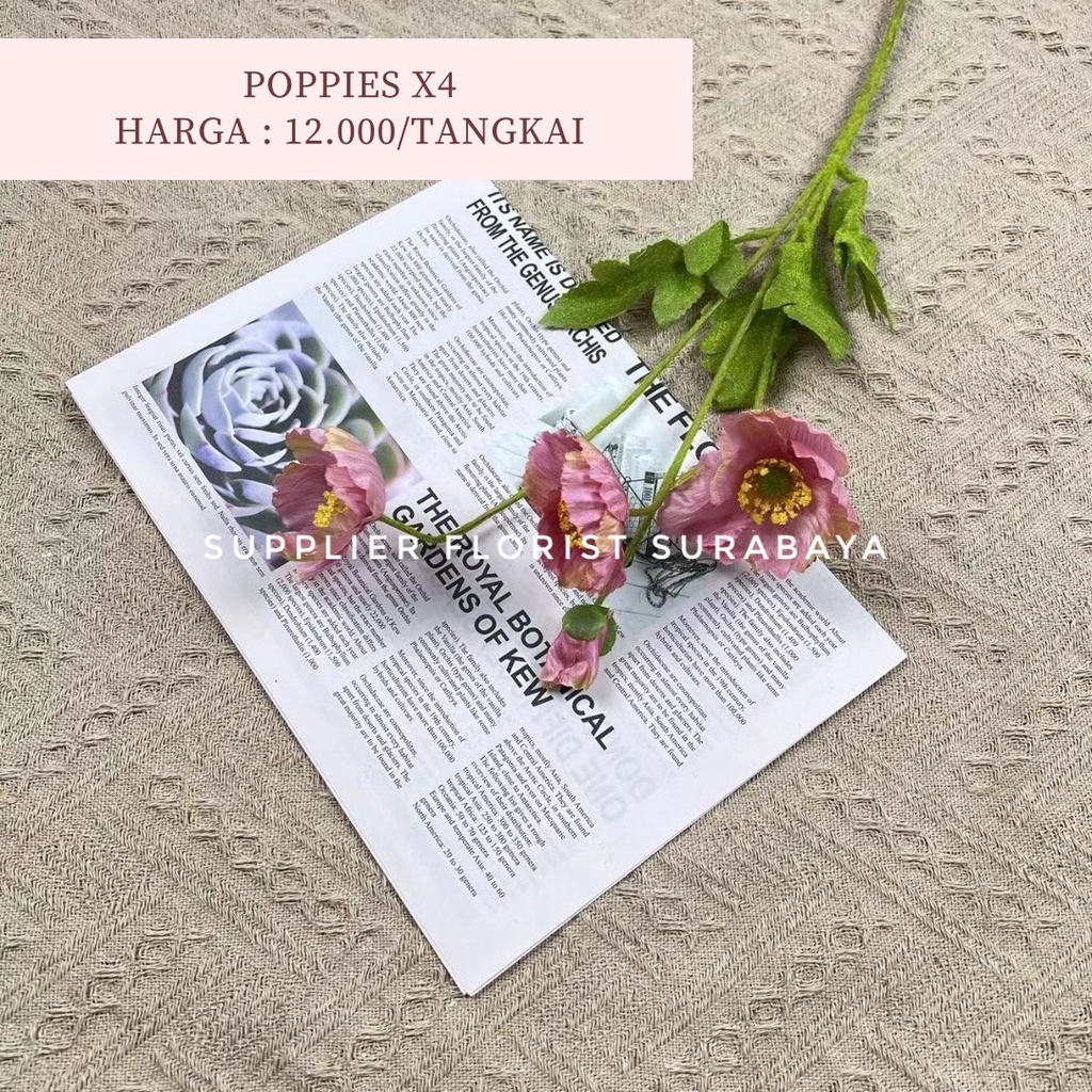 BUNGA ARTIFICIAL POPPIES BUNGA PALSU ARTIFICIAL FLOWER POPIS POPIES CABANG 4 BUNGA HIAS BUNGA VAS MEJA DIY FLORIST BUNGA PANJANG