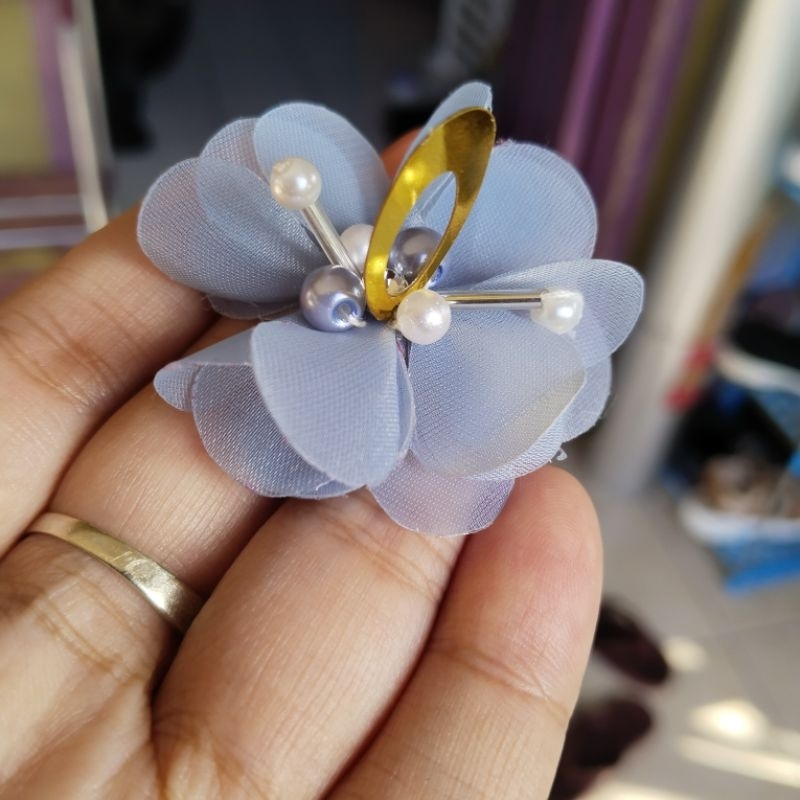 bunga organza 3 d dengan ukuran 4 cm, harga dia tas untuk per 1pcs