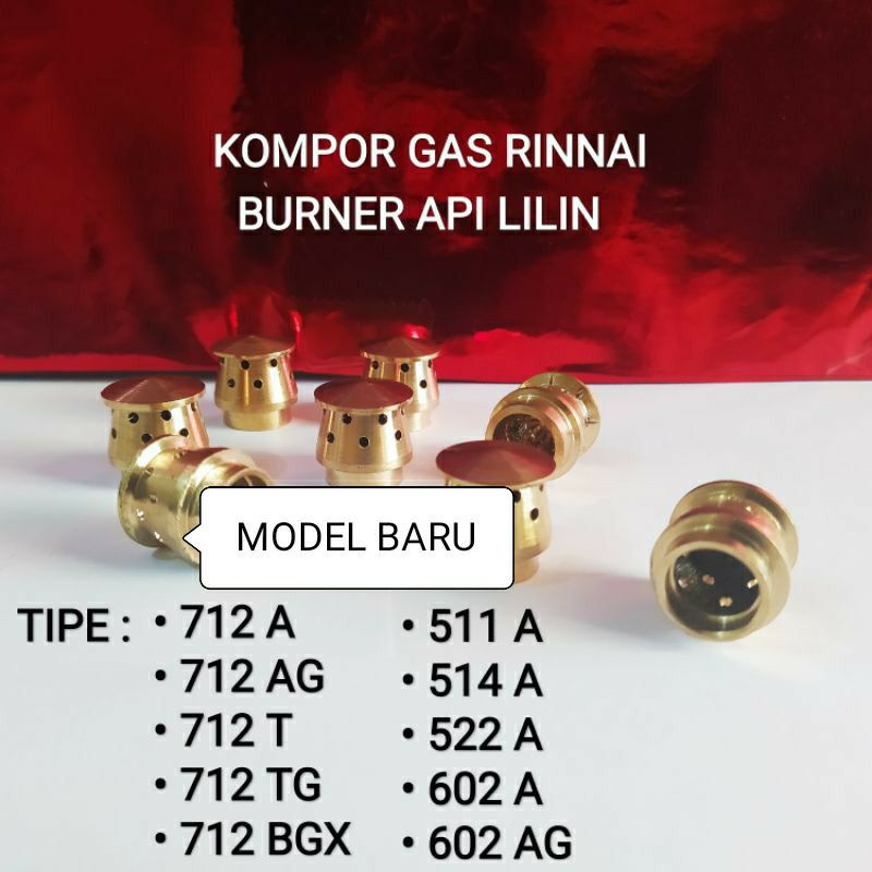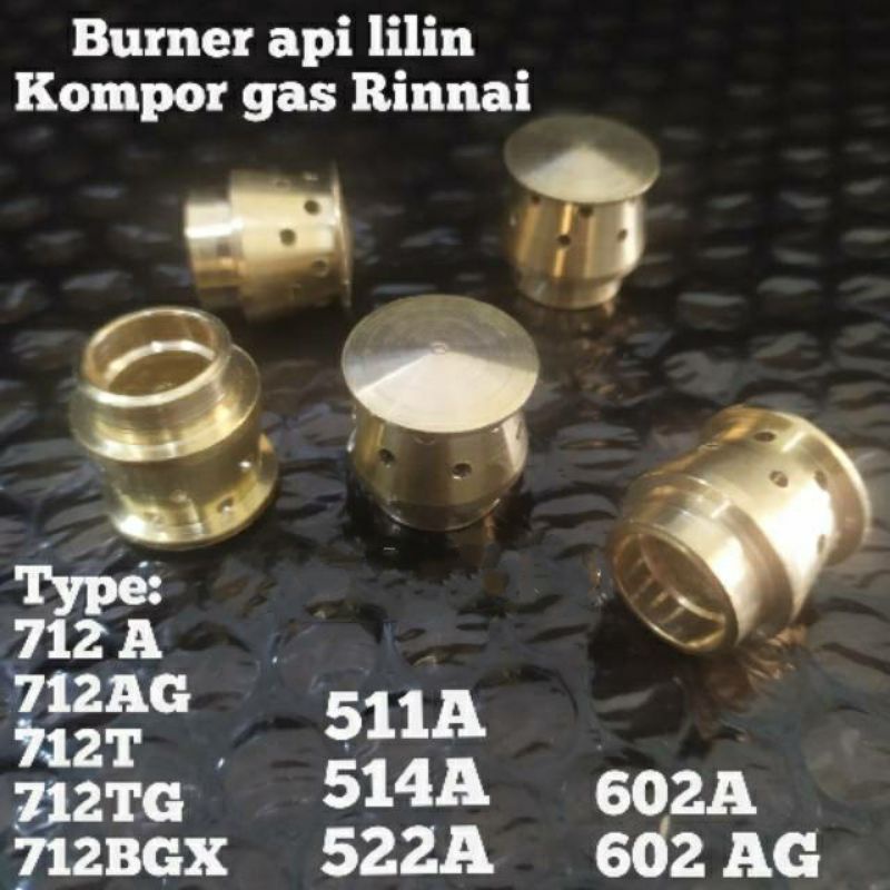 Deskripsi Burner Rinnai Api Lilin / Burner Api Lilin Rinnai , KuninganBurner Api Lilin Kompor Gas Rinnai Api lilin ini dapat digunakan untuk kompor Rinnai tipe baru: RI-511 A RI-514 A RI-522 A RI-602 A RI-602 AG RI-712 A RI-712 AG RI-712 T RI-712 TG RI-712 BGX