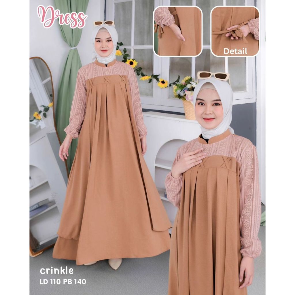 Detail Busana muslim wanita terbaru gamis Devina Dress Gamis bahan kringkel premium Model gamis terbaru Gamis tanah abang Gamis jumbo ld 120
