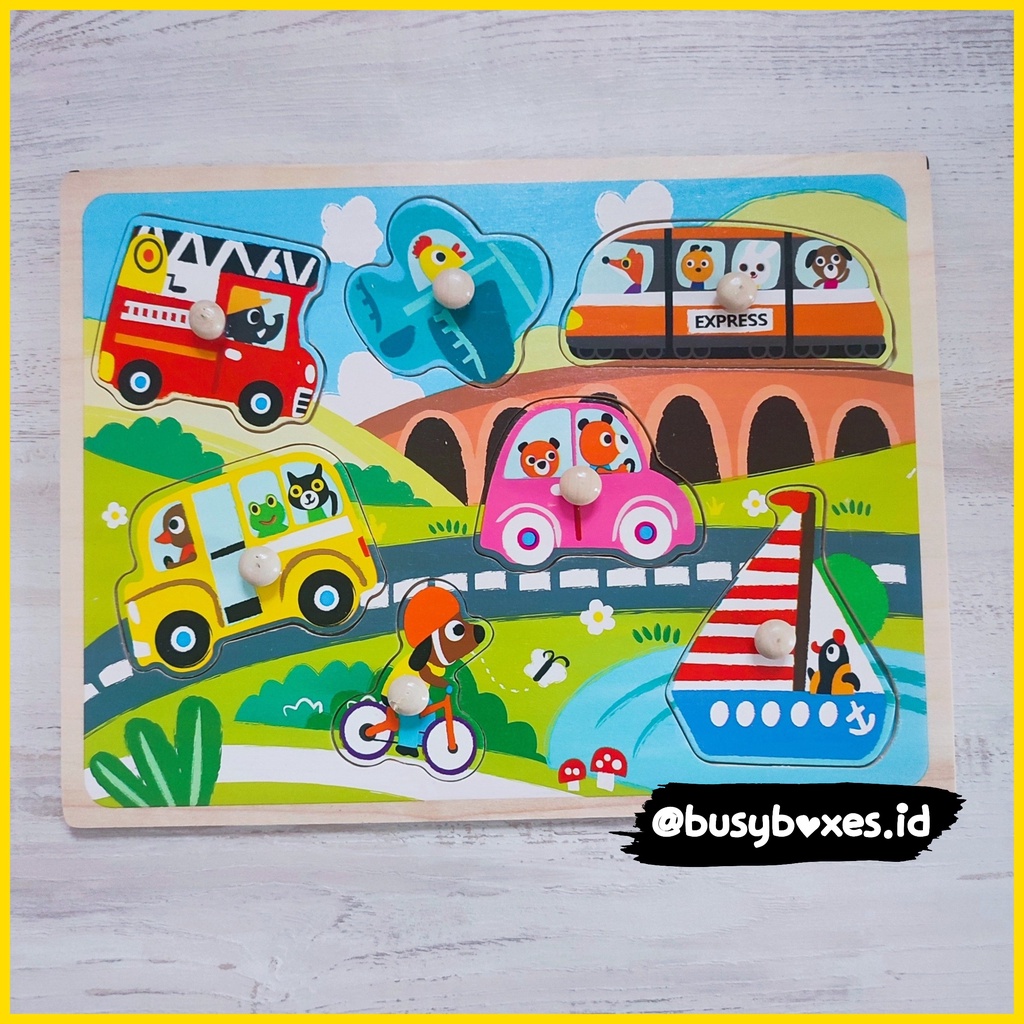 Detail [busyboxes.id] Mainan Edukasi Mencocokan alat transportasi kendaraan Puzzle Kayu Puzzle Knob Wooden Toys Mainan Kayu