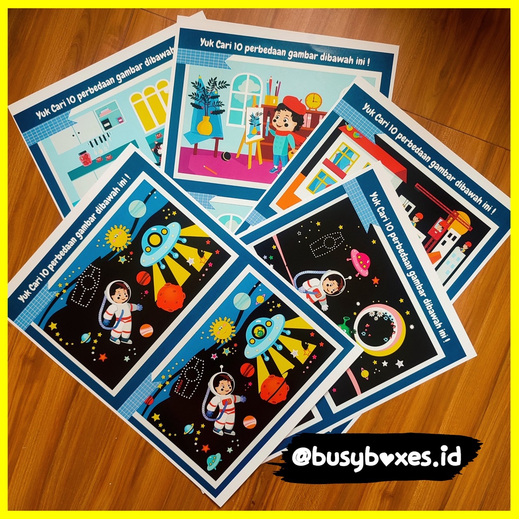 "Bingung mengisi kegiatan untuk si kecil selama dirumah aja mom, yuk ajak sikecil bermain mencari obyek yang tersembunyi dengan worksheet dari busyboxes.id. Produk ini terdiri dari 5 lembar aktivitas menarik. Oia mom product ini terbuat dari kertas art cartoon 260 yang tidak dilaminasi ya mom, cara penggunaan nya mom bisa memasukan produk ini ke dalam map binder yang ada dirumah atau mom dapat menggunakan reusable writing pocket. Namun jika mom belum memiliki nya mom bisa membeli reusable writingg pocket di etalase kami ya :)"