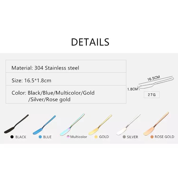 Detail butter knife spoon stainless steel 304 / sendok oles mentega selai keju roti / cheese buter cake dessert jam