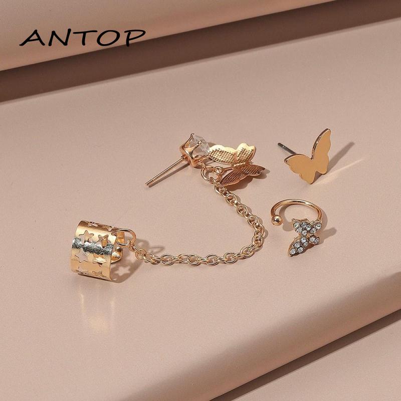 -Dengan Desain kupu-kupu, set klip telinga ini memiliki gaya yang lucu dan mengkilap.