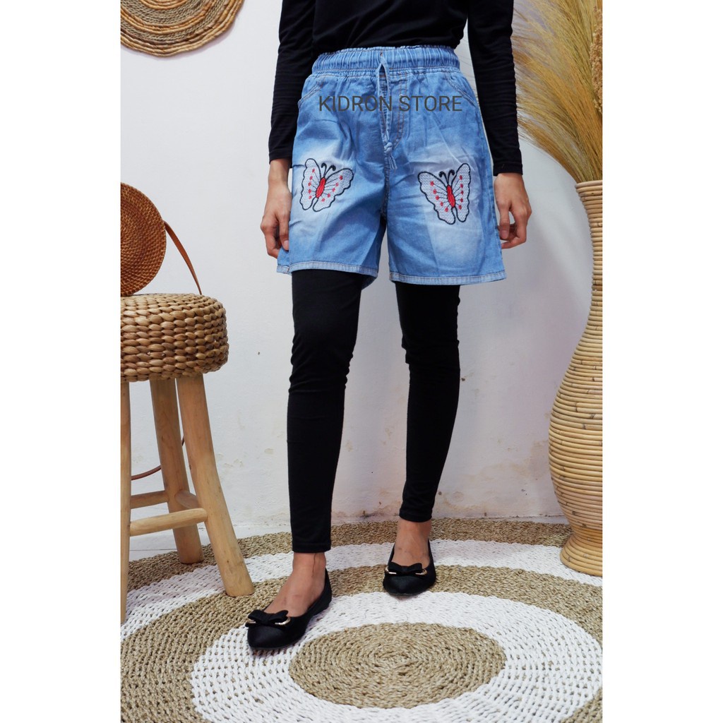 Detail Butterfly Hot Pants Celana Pendek Hotpants bordir Motif Kupu Jeans Wanita Motif Kupu Bordir Paha terbaru kekinian
