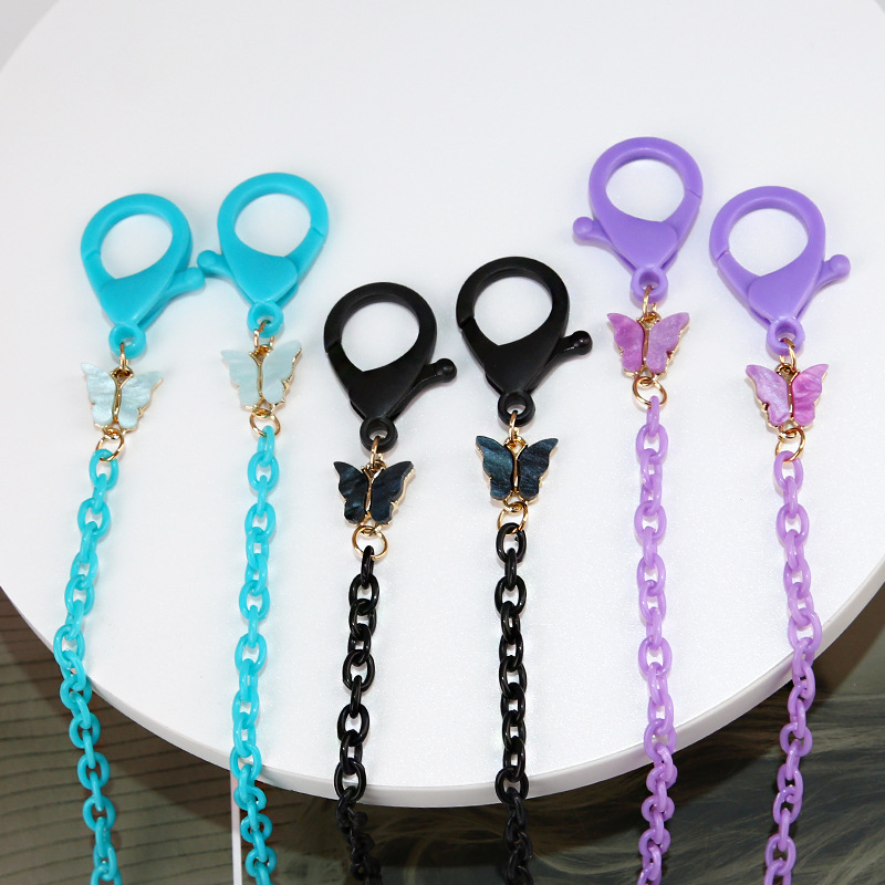 Otomotif > Aksesoris Pengendara Motor > Masker > Butterfly Korean Fashion Mask Chain Neck Strap Lanyard Rantai Masker Tali Gantung Masker Wajah Lanyard Topeng Tali Kalung Dengan Dua Kait