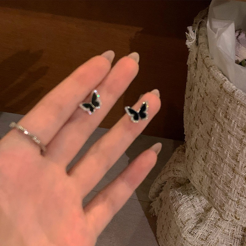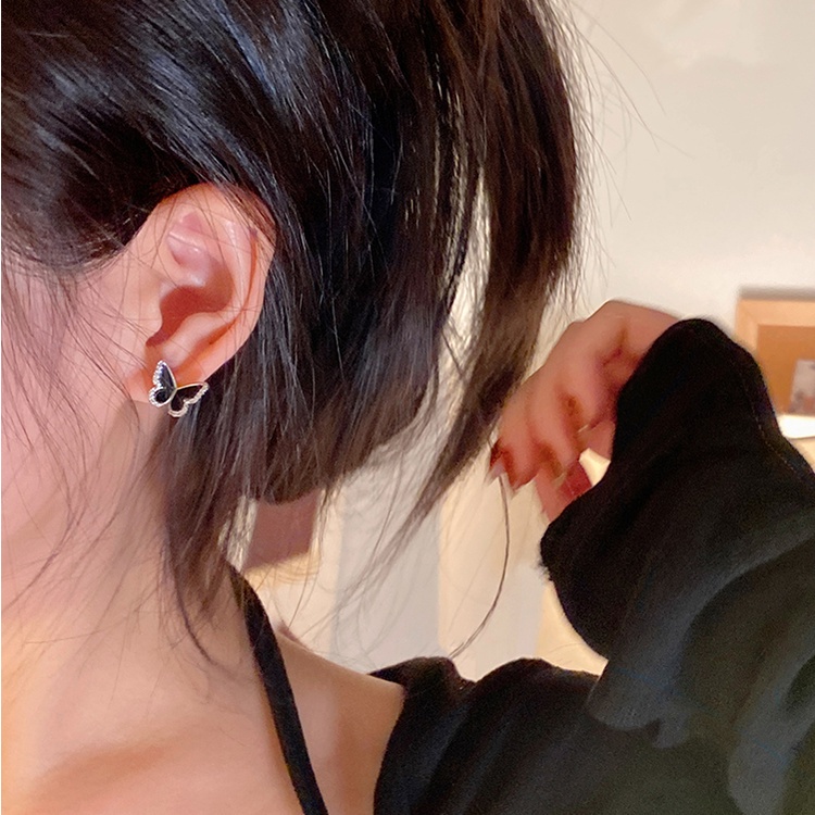 Detail Butterfly Stud Earrings Untuk Wanita Sederhana Perak Anting Aksesoris Fashion Perhiasan