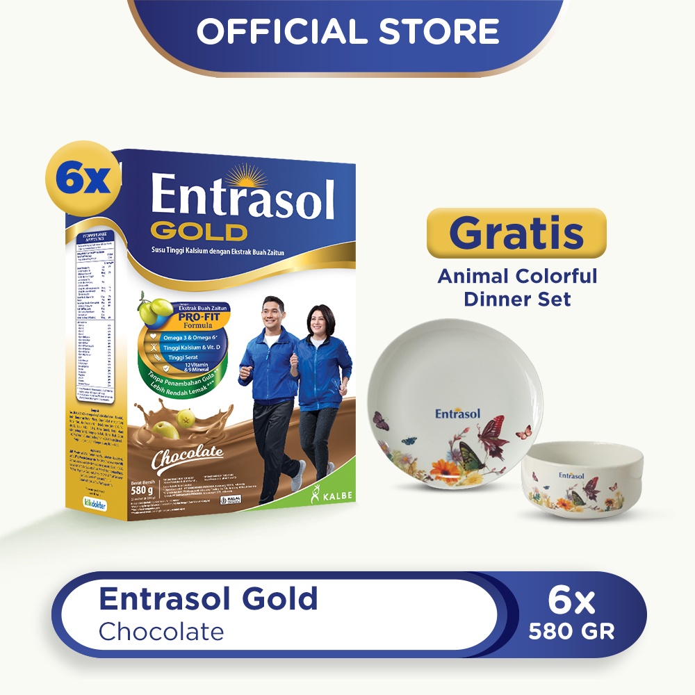 Detail isi: 6pcs Entrasol Gold Chocolate 580g dan Free Animal Colorful Series Dinner Set *Selama persediaan (Gift) masih tersedia