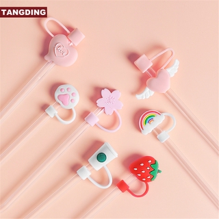 【COD Tangding】Sedotan Silikon Universal dengan Tutup Anti Debu Bentuk Bebek/Beruang/Sakura/Pelangi