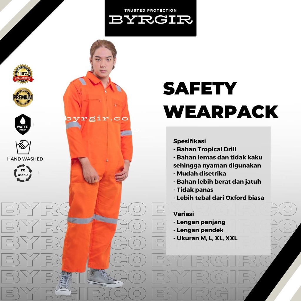 Detail BYRGIR Safety Wearpack Baju Kerja Bengkel Seragam Coverall Proyek Wearpack Model Terusan Langsungan Polos Terusan Atasan Lengan Panjang Bahan Ketelpak Twill