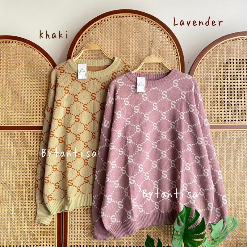 Pakaian Wanita > Sweater & Cardigan > Bytantisa - Sweater Rajut Oversize Syakila Motif S