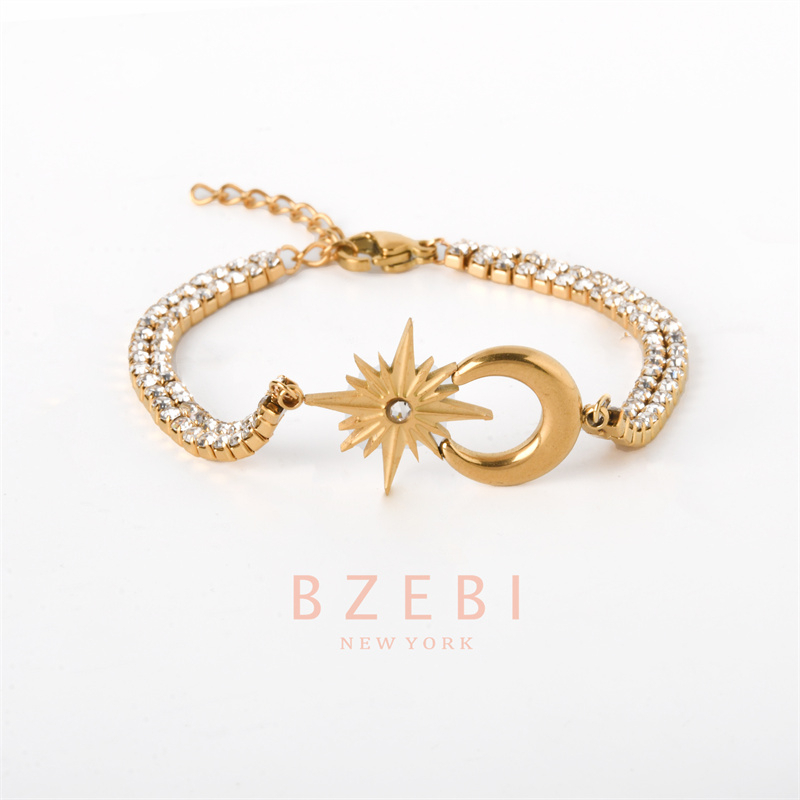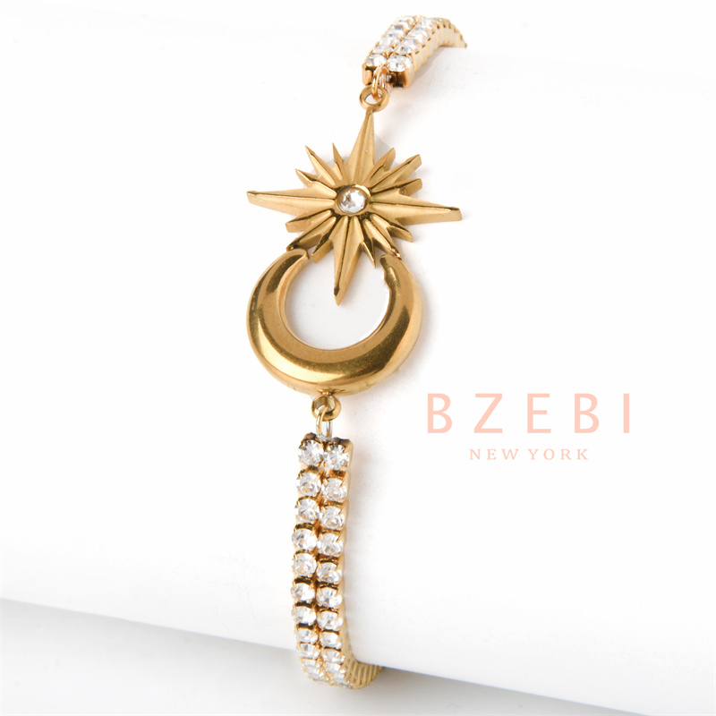Detail Bzebi Gelang Charm Titanium Steel Emas 18k Dengan Berlian, Anti Karat, Aksesoris Fashion Wanita, Perhiasan Gaya Korea, Hadiah Ulang Tahun Dengan Kotak Eksklusif 1204b-2