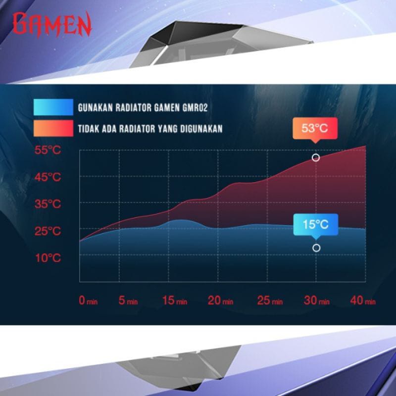 GAMEN GMR02 Gaming Fan Cooler Radiator Pendingin HP Cooling Fan Without Wire Use Battery Blue Lightning Compatible With All Handphone Garansi Original Resmi