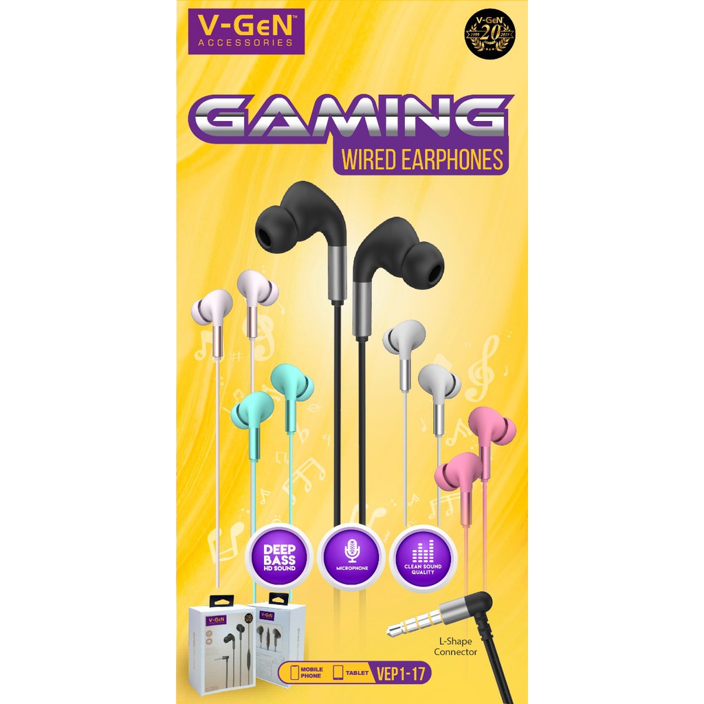 C_ Handsfree V-GeN VEP1-17 Wired Earphone Headset Gaming L Shape Connector VGEN