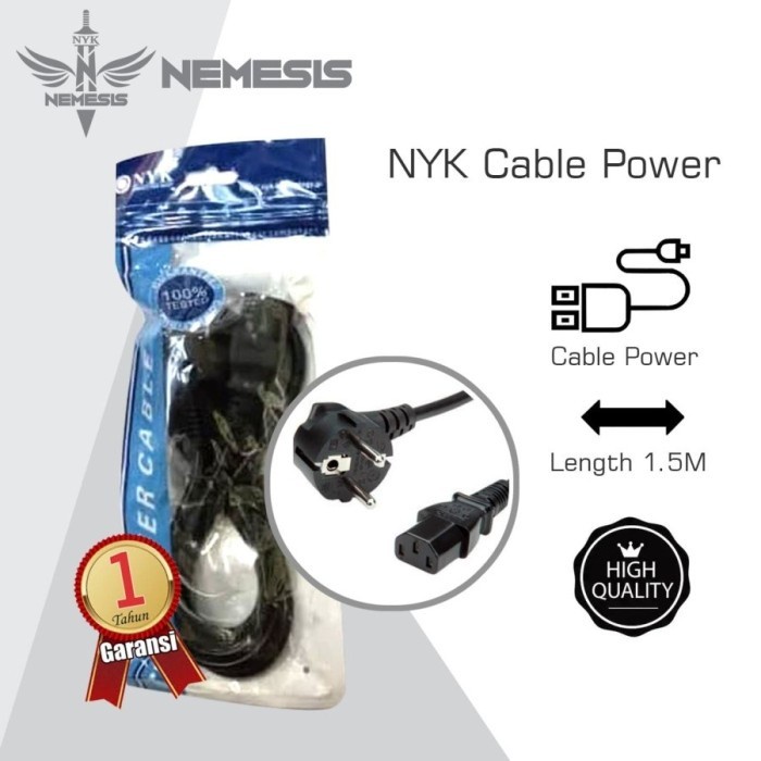 NYK Kabel Power [1,5 M] merupakan kabel yang dapat digunakan untuk mengalirkan daya listrik ke PC atau Monitor. Dapat juga digunakan untuk berbagai macam peralatan elektronik yang menggunakan port listrik 3 Lubang seperti pada gambar. Kabel ini memiliki panjang 1,5 Meter, tebal 0,75. Kabel power ini dibuat dari bahan berkualitas sehingga menjadikan kabel ini kuat, awet, dan tahan lama.