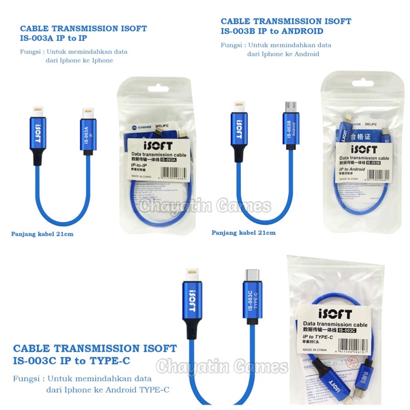 Fungsi : - Untuk Memindahkan data dari hp Iphone ke berbegai perangkat eletronik sesuai varian kabel yang diorder - Bisa juga sebagai kabel cas (pengisian daya)