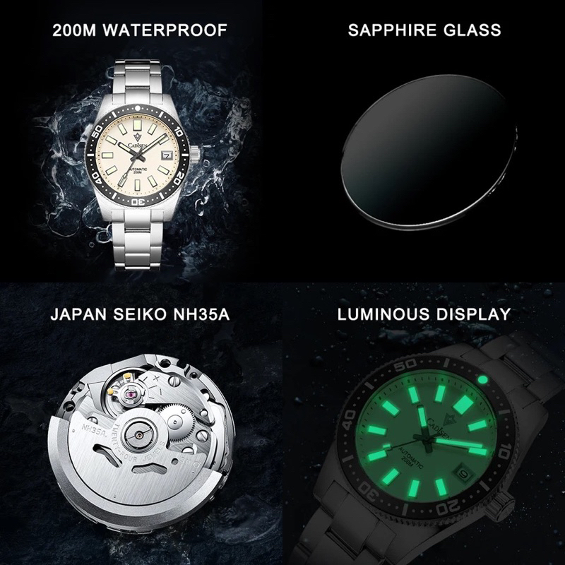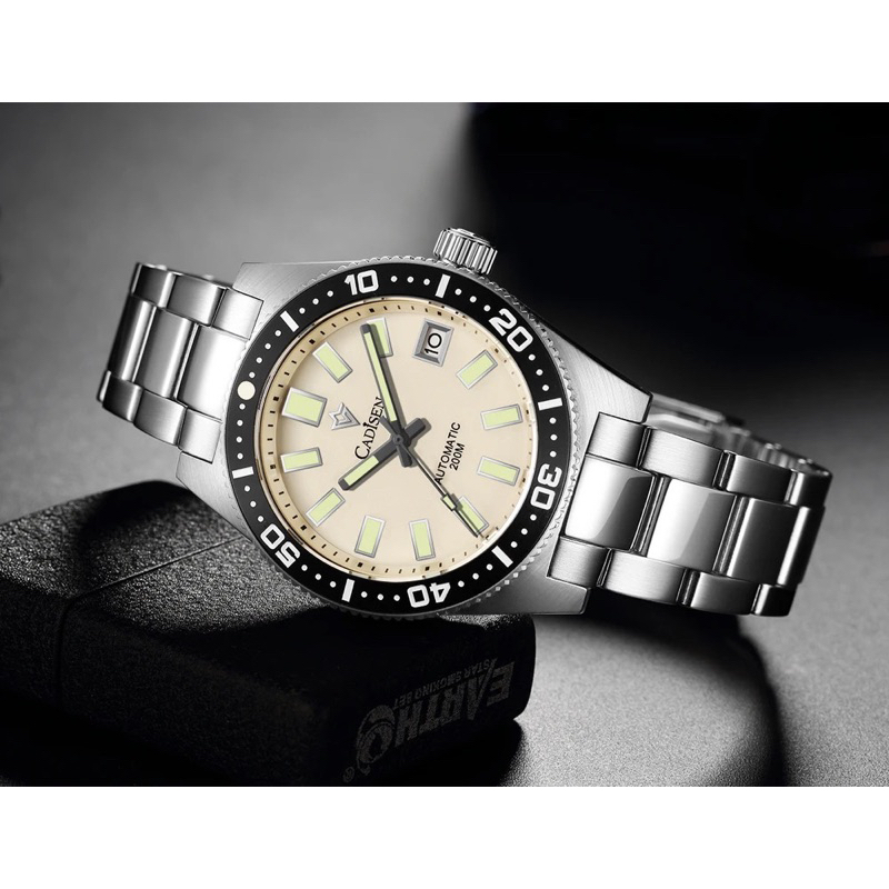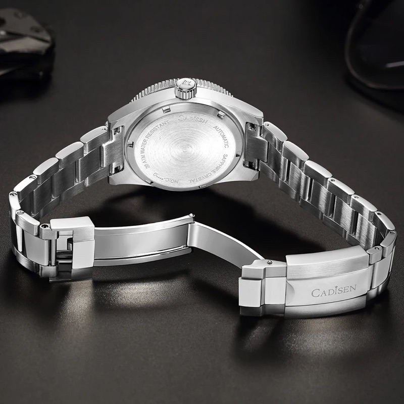 SPESIFIKASI: Merek : Cadisen Jenis Tali: Stainless Stell Bahan Case: Baja tahan karat Bahan Dial Window: Saphire Bahan Dial: Baja tahan karat Tahan Air: 50 M / 5 Atm Waterproof Tipe Mesin: Mekanik Otomatis (tanpa baterai), Seiko NH35A Diameter Dial & Case: 3,8 cm Ketebalan Dial: 1,2 cm Panjang Tali: 20 cm Lebar Tali: 2 cm Lug to Lug: 4,6 cm Berat: 124 g