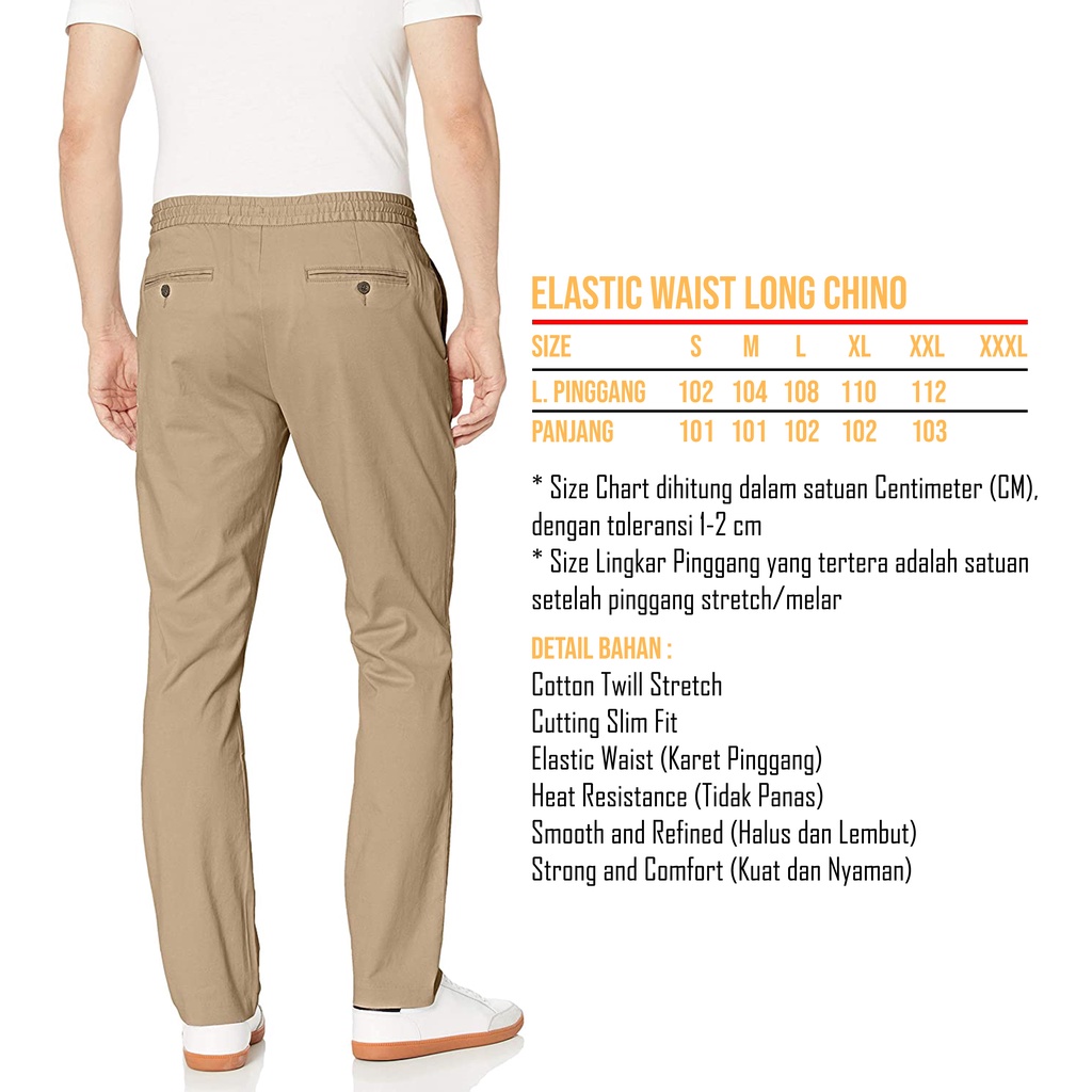 ✔️ Deskripsi Produk : Celana Chino ini memiliki kesamaan dengan chino pada umumnya yaitu cutting yang slim-fit dengan garis trim yang sempurna membungkus panjang dan juga dilengkapi dengan karet pada bagian pinggang untuk memudahkan dan mencegah celana melorot saat digunakan. Celana ini sangat cocok untuk digunakan saat bekerja ke kantor, hangout santai bersama para sahabat, pergi kuliah, ataupun menghadiri acara pesta yang bersifat semi-formal.
