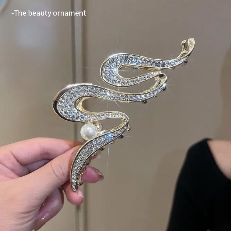 Detail Cahaya Mewah High Sense Gelombang Sederhana Glitter Besar Pan Hair Grabbing Head Jewel