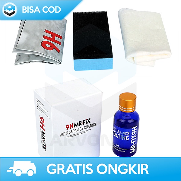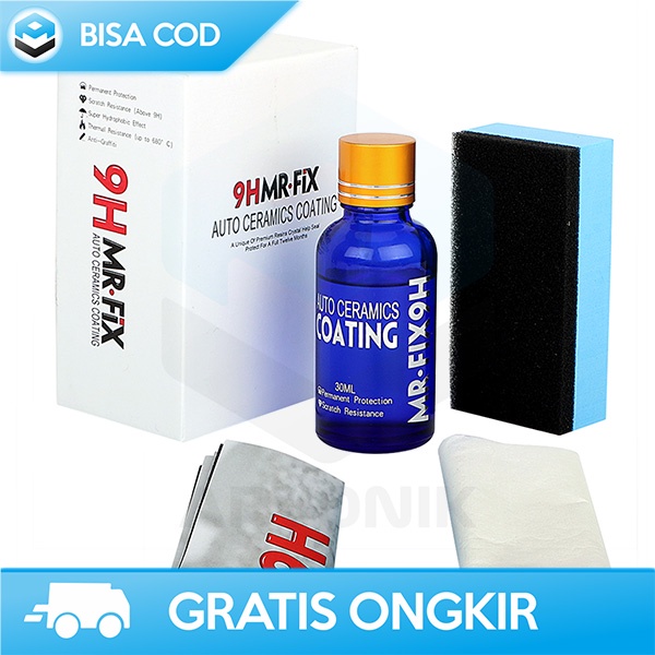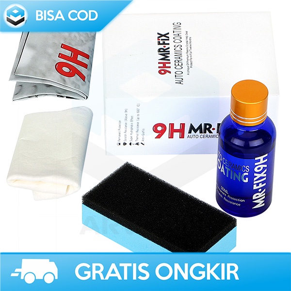 1 x MR FIX Poles Mobil Auto Ceramics Coating Liquid Mobil Anti Scratch 9H 1 x Microfiber Cloth 1 x Sponge Spesifikasi Material Cairan Nano Glass Dimensi Volume: 30 ml Lain-lain Tingkat Keras: 9H