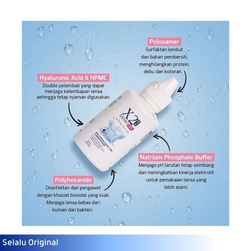 • Keunggulan Produk 1. Kemasan : 1 botol 60 ml (Jika butuh kemasan 360ml & 120ml, Silahkan Chat Admin) 2. Cocok digunakan untuk : Softlens Bening, Softlens Warna 3. HA dan HPMC double pelembab untuk menjaga kelembaban Kontak Lens 4. Polyhexanide Disinfektan & Pengawet dengan khasiat biosidal yang kuat