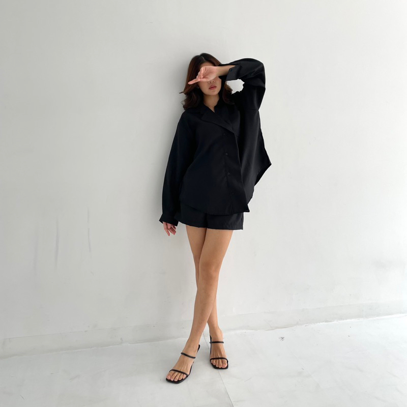 Detail CAIRO SET | Set Kemeja Wanita Panjang Setelan Celana Pendek Highwaist Short Oversized Korean Outer Shirt