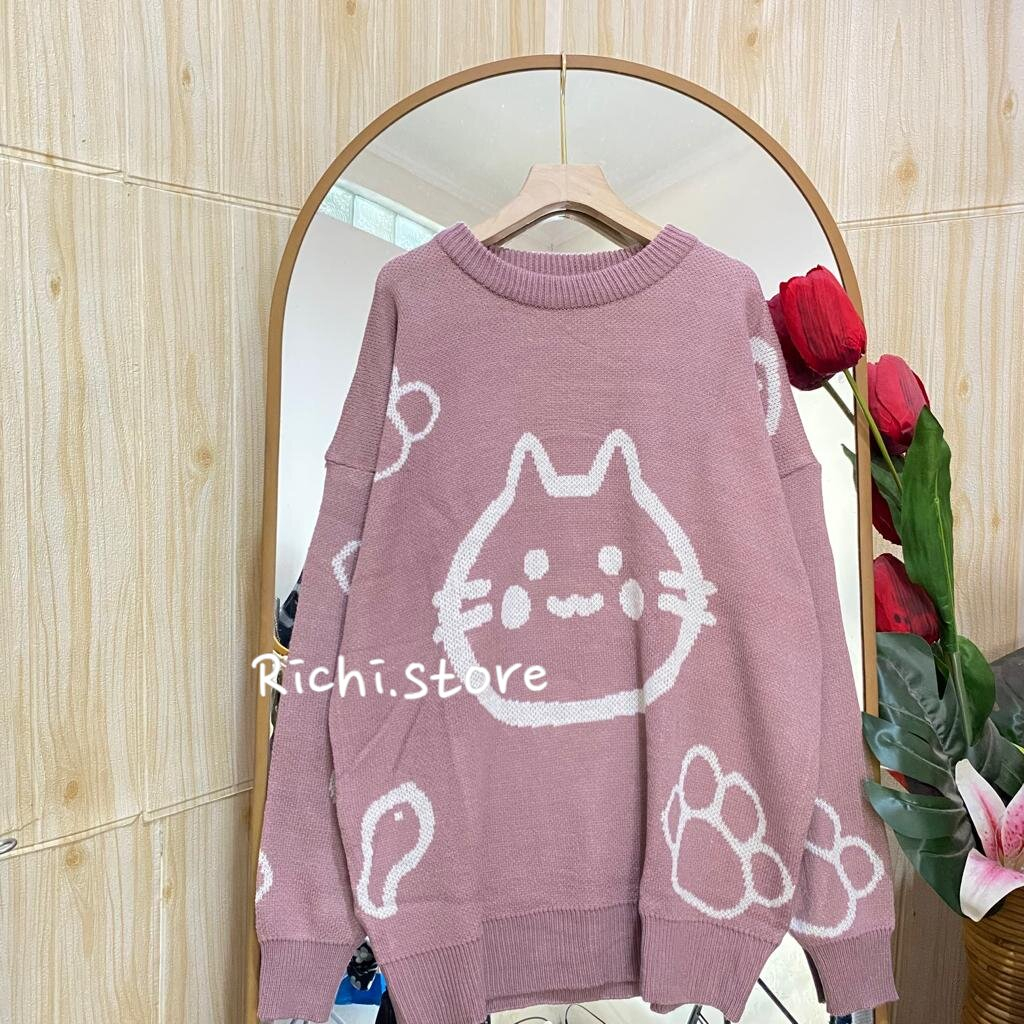 *Atasan Sweater model Oversze dengan kerah Bulat, Motif Kucing dan Lengan model Balon *Bahan full rajut 12 gate, model rajut rapat *Bahan Tebal standar (bukan tebal sekali) *Kualitas lebih bagus dan rapih *Berat / 1 pcs 380 gram *ALL SIZE *Masuk mulai bb 40 kg sampai dengan 85 kg *Masuk mulai tb 140 sampai dengan 165
