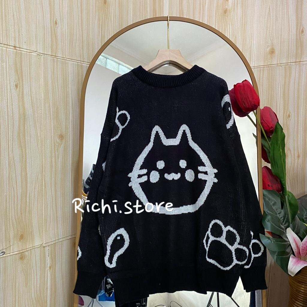 Detail Caitlin oversize sweater rajut korean style motif kucing