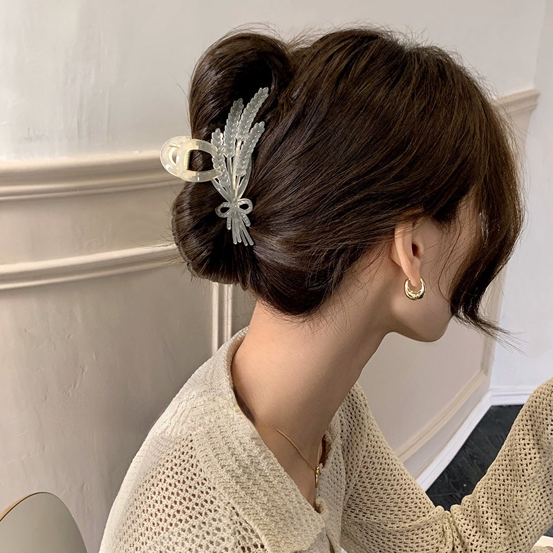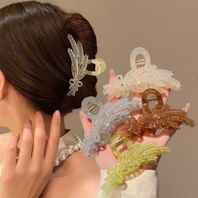 Detail Cakar Rambut Resin Bentuk Gandum Temperamen Elegan/3Warna Klip Hiu Makeup Mandi Sederhana Untuk Wanita Perempuan