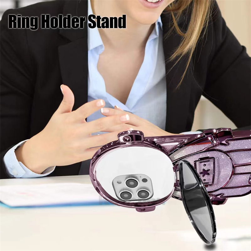 Detail Cakupan Penuh Pelapisan Mewah Glitter Astronot stand phone case iPhone 14pro Max 13pro Max 12pro Max 11pro Max Perlindungan Lensa Pencegah Jatuh Soft Casing