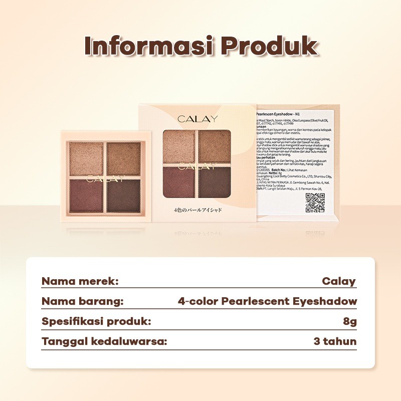 CALAY EYESHADOW SMOKEY 4 COLOR PIGMENTED PEARLESCENT WARNA NUDE DARI TOKO SWEETSPACE