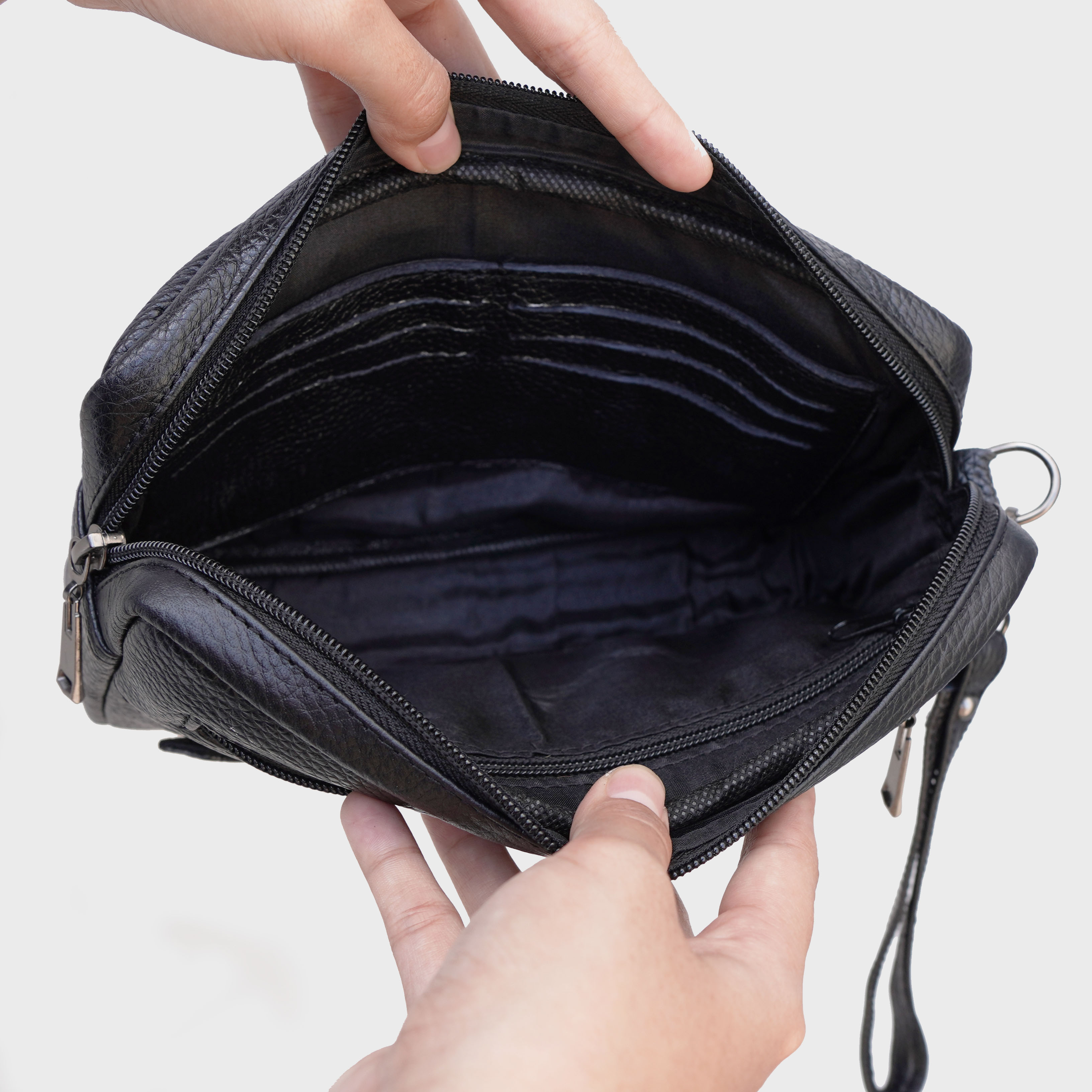 ***Highlight*** Handbag Clutch Pria Kulit Sapi Asli nih dijamin ori. Terbuat dari kulit sapi asli jenis pullup. Jahitan mesin rapi dan kuat menggunakan benang nilon. Banyak sakunya sehingga dapat memuat banyak barang seperti HP, Charger, Power bank, kartu identitas, dan barang kecil lainnya Buat kamu juga yang sedang mencari kado ulang tahun buat pacar, adek, kakak, ayah, atau orang terdekat lainnya, Clutchini juga bisa dijadikan hadiah.
