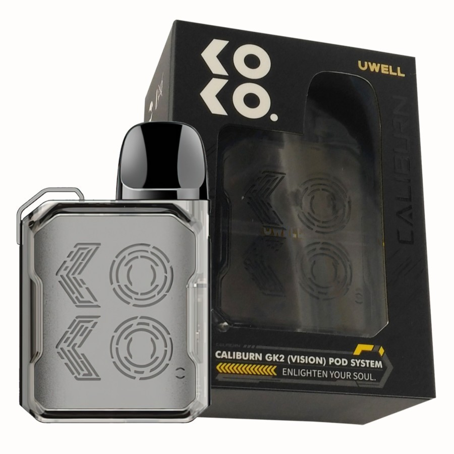 CALIBURN GK2 adalah versi upgrade dari seri KOKO PRIME. Ini adalah kombinasi sempurna antara cyberpunk, steampunk, dan futuristik. Fungsi cahaya dan getaran memberikan cara baru untuk berkomunikasi dengan vapers. Cahaya menyinari warna yang berbeda pada tingkat daya yang berbeda. Dan perangkat bergetar di berbagai kondisi.