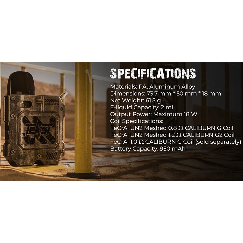Contents: 1X Caliburn Tenet KOKO Device 1X Caliburn G2 Empty Cartridge 1X UN2 Meshed 0.8ohm Caliburn G Coil(pre-installed) 1X UN2 Meshed 1.2ohm Caliburn G2 Coil(spare) 1X Type-C Charging Cable 1X User Manual 1* Metal Lanyard