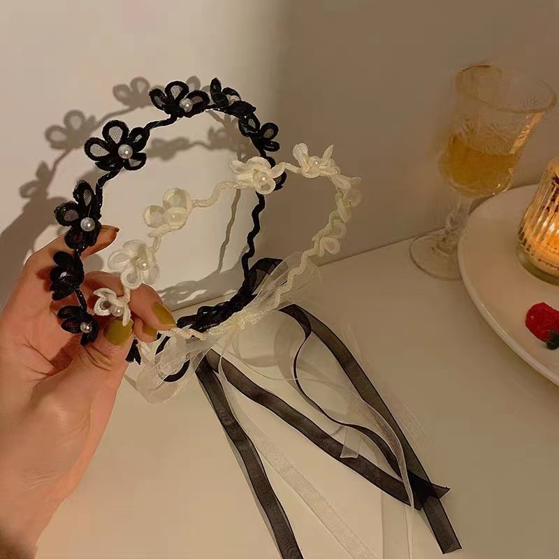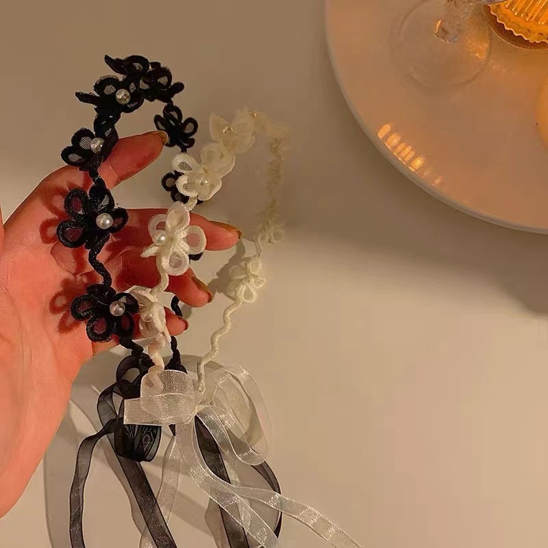 Detail Caliloops Bando Bunga Tali Polos Hitam Putih Korea Wanita Dewasa Elis