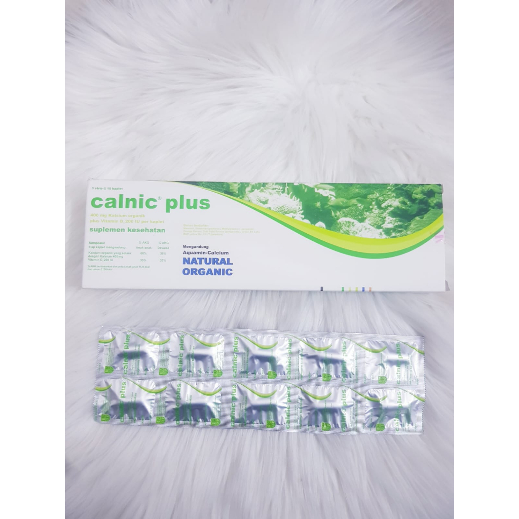 CALNIC PLUS merupakan suplemen makanan yang mengandung kalsium organik dan vitamin D. Suplemen ini digunakan untuk membantu memenuhi kebutuhan kalsium dan vitamin D di dalam tubuh. Indikasi Umum Membantu memenuhi kebutuhan Kalsium & vit.D Komposisi Ca 400 mg, vitamin D3 200 IU Dosis Dewasa : 1 x sehari 1 kaplet, Remaja dan Anak > 8 tahun : 1 x sehari 1/2 kaplet Aturan Pakai Berikan sesudah makan Perhatian Hiperkalsemia ringan, DM, pasien yg mejalani diet rendah natrium. Kontra Indikasi - Efek Samping Gangguan GI ringan. Golongan Produk Vitamin & Suplemen Kemasan Dus, 3 Strip @ 10 Tablet Manufaktur Gracia Pharmindo No. Registrasi BPOM: SD091537221