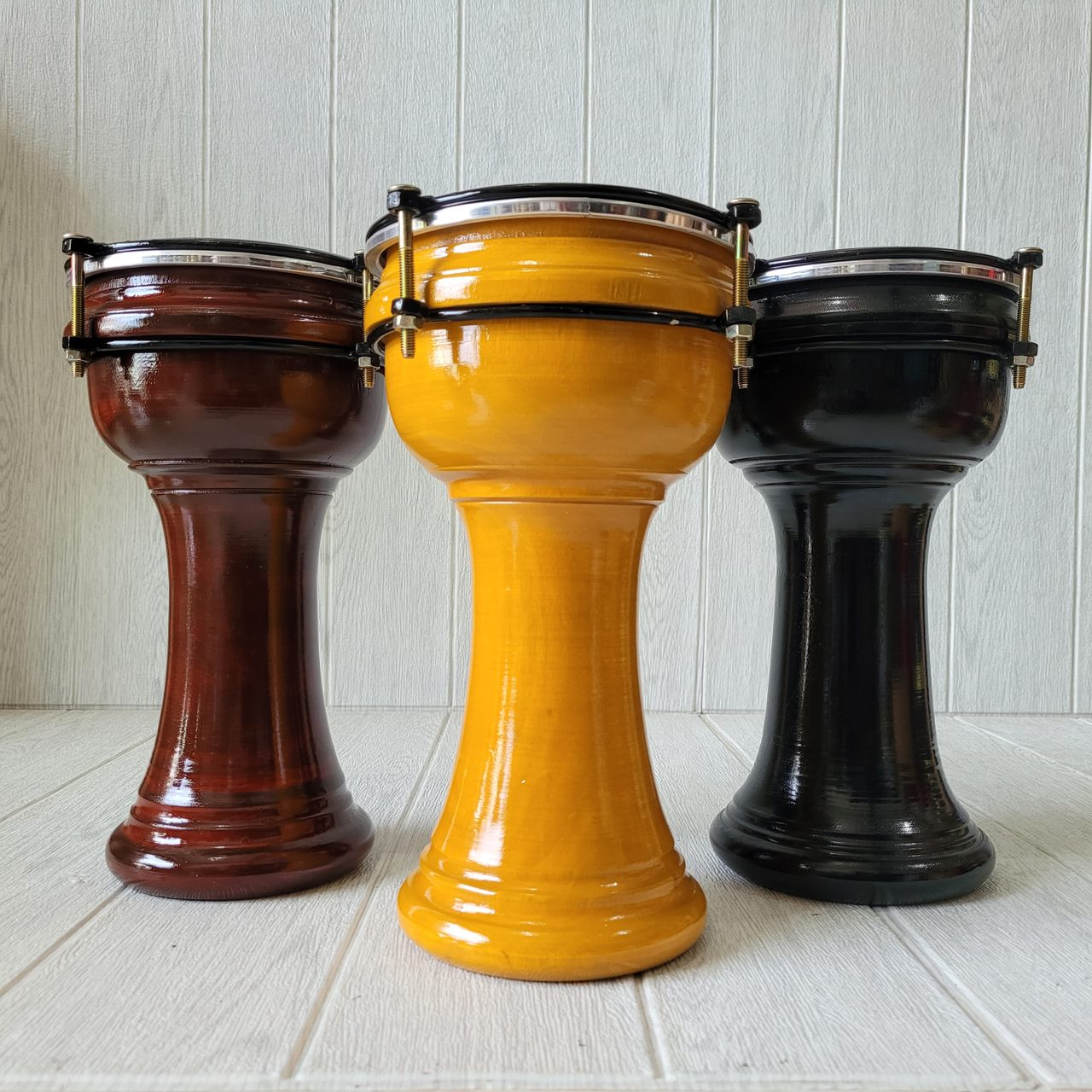 Alat musik darbuka ini biasanya digunakan untuk Hadroh(sholawatan), Banjari, musik-musik arab, Gambus, dll. Yang dikombinasikan dengan alat musik rebana lainnya.