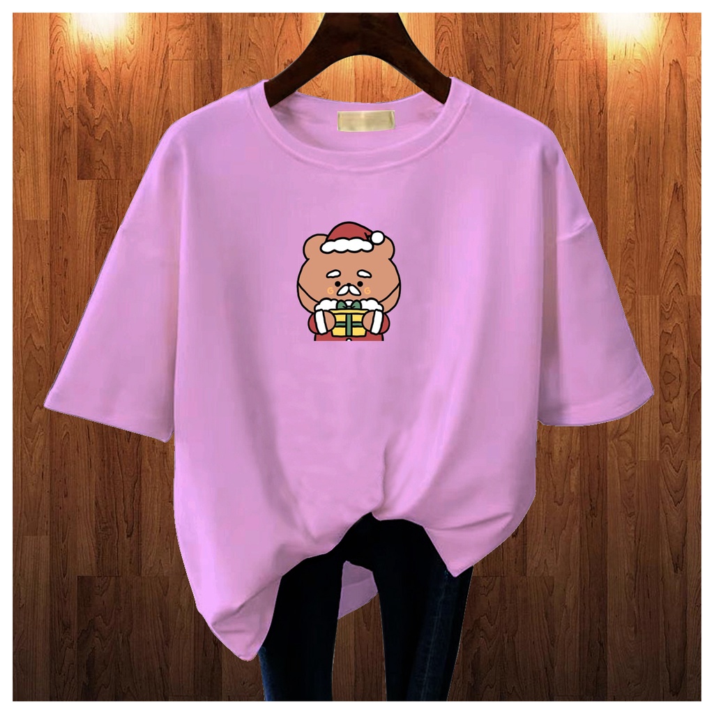 Detail CALVIERO SHOP - BAJU KAOS ATASAN WANITA PRINT BEAR CHRISTMAS LOGO GALAXY PRINT