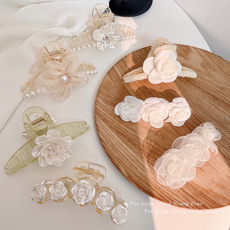 Aksesoris Fashion > Aksesoris Rambut > Jepitan & Pin Rambut > Camelia Mawar Meraih Bunga, Temperamen, Klip Rambut Perempuan Musim Panas Hiu Chip Perhiasan