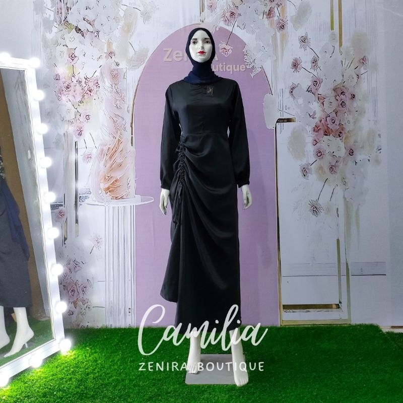 CAMILIA Dress Polos lengan balon / Rok Serut / Baju Kondangan / Lamaran / Lebaran / Braidsmaids murah / Gamis remaja / Prewedding / wisuda / couple by Zenira