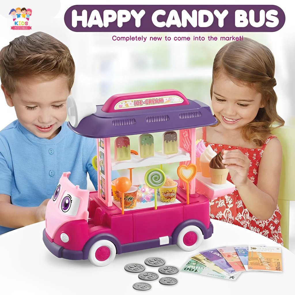 Mainan Anak HAPPY CANDY BUS Mainan Bis Permen Anak Candy Series Toy 2in1