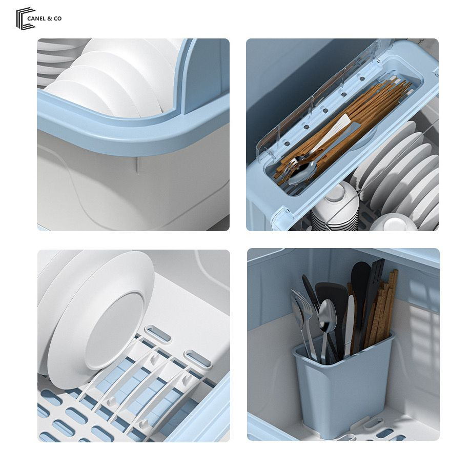 Detail CANEL & CO Tutup Rak Piring Plastik / Rak Pengering Air Mangkok rak piring Dengan Tutup Rak / Mangkok/Sendok/ Garpu Rak Dapur