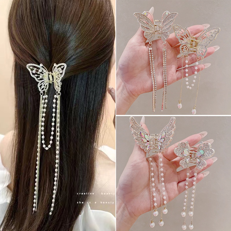 Aksesoris Fashion > Aksesoris Rambut > Jepitan & Pin Rambut > Canggih Berlian Imitasi Rumbai Klip Rambut Logam Kupu-Kupu Kecil Ambil Klip Kembali Kepala Setengah-Dasi Klip Rambut Hiu Klip Hiasan Kepala