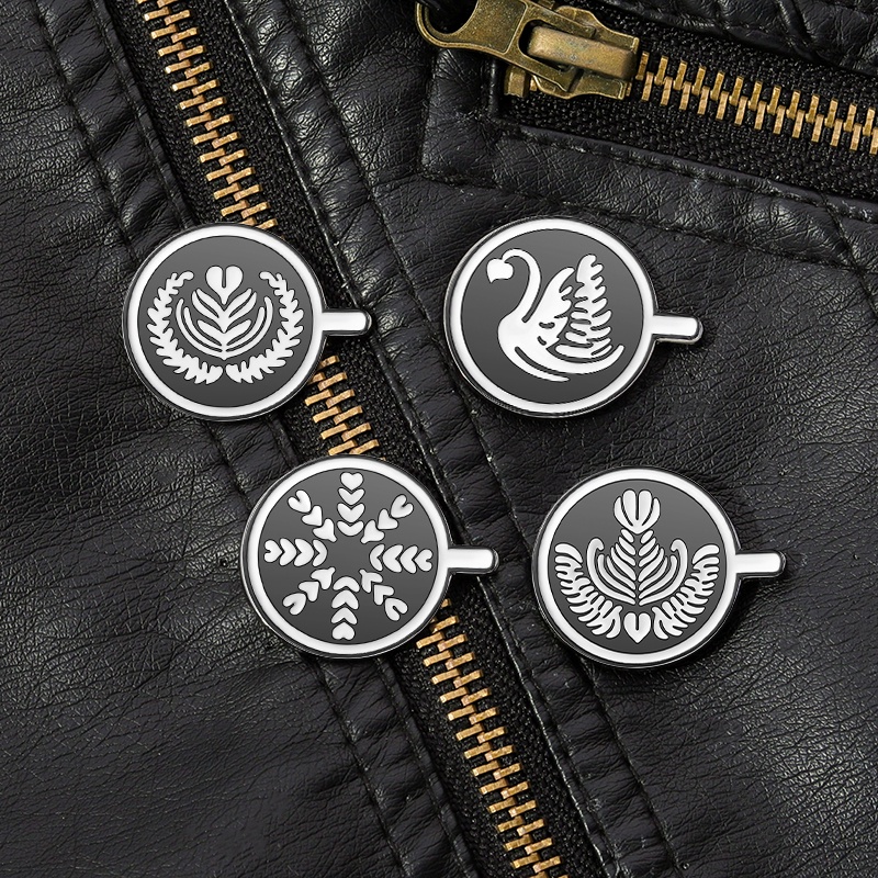 Detail Cangkir Kopi Enamel Pin Lencana Bros Bunga Latte Art Aksesoris Perhiasan Custom Kerah Pin Ransel Grosir Hadiah Teman