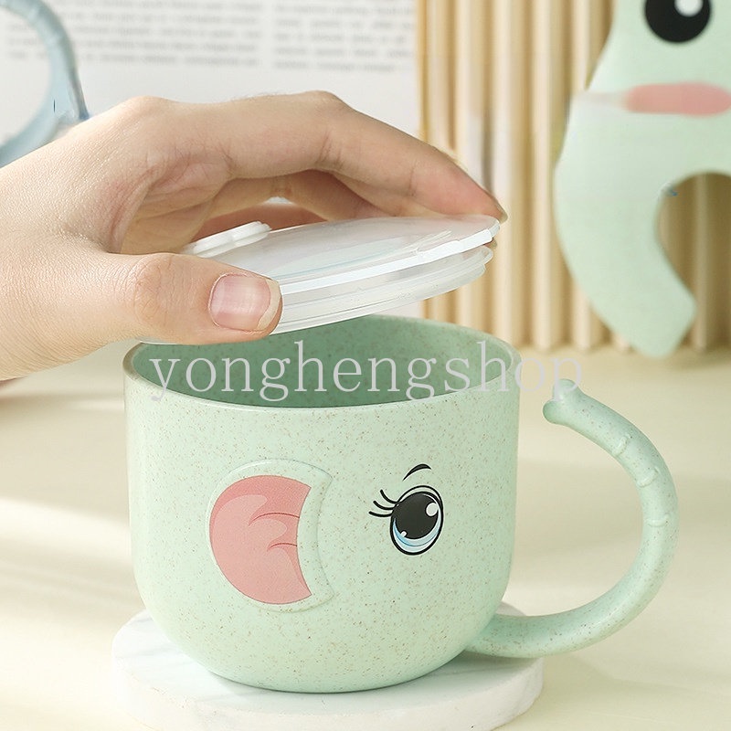 Detail Cangkir Minum Desain Kartun Gajah Dengan Gagang Bahan Wheat Straw Anti Bocor Untuk Anak