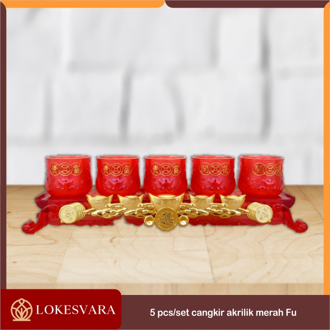 Cangkir Puja Sembahyang Akrilik 5pcs/set FU MerahCangkir Puja Sembahyang Akrilik 5pcs/set FU Merah