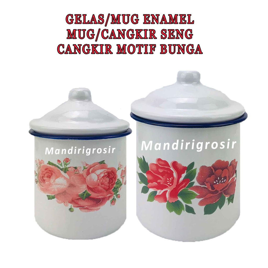 Detail Cangkir Seng Jadul * Mug Enamel + Tutup * Cangkir Motif Bunga * Mug Bermotif